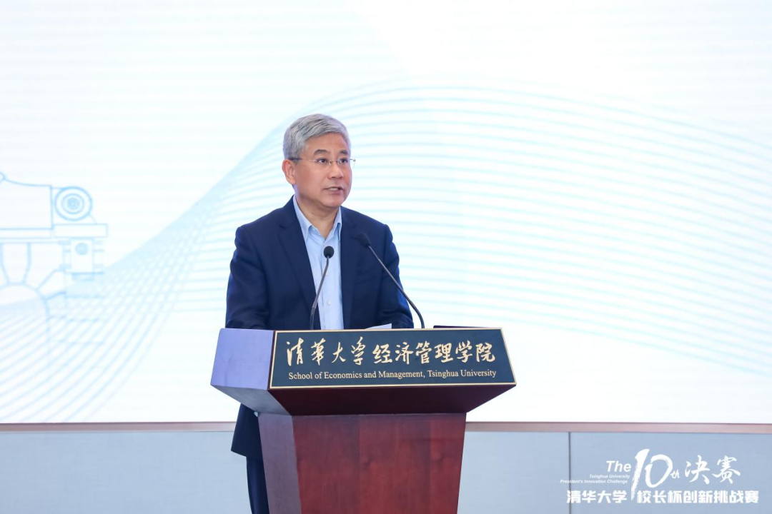 清华大学经济管理学院院长白重恩教授代表清华经管学院以及主办方清华x-lab致辞。白教授谈到,清华x-lab将继续坚持做好清华“三创”教育,讲好清华“三创”故事,推进更多项目成长、落地,汇聚更多的创业人才和资源,扎实推动中国高校创新创业教育高质量发展。