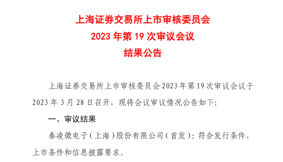 2023年3月28日,盛世景已投企业泰凌微电子(上海)股份有限公司(以下简称“泰凌微”或“公司”)通过了科创板上市委审议会议。