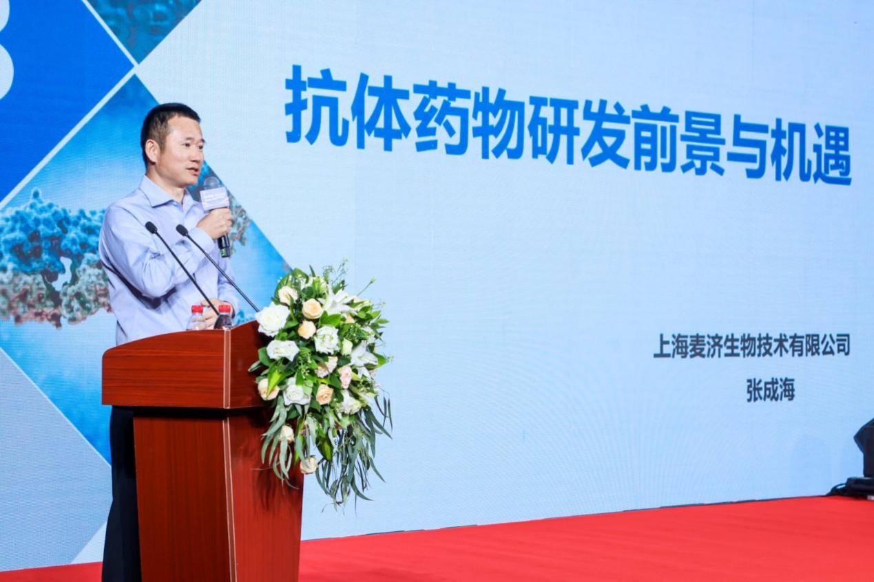 麦济生物创始人张成海博士就《抗体药物研发前景与机遇》做了专题演讲,将生物医药各细分行业、品类和全球相关重大科研成果做了梳理,展示了生物医药行业的细分市场规模及增速,剖析了2013-2022年销售排名前十药品结构的变化所映射出的全球疾病谱及用药结构变化,并结合全球及国内抗体药市场规模、增速及研发趋势,讲解了麦济研发产品的立项依据及研发展望。此外,张博士对麦济生物做了系统介绍,公司主要围绕过敏性炎症疾病、自身免疫性疾病等领域尚未满足的临床需求,通过差异化的竞争策略进行创新抗体药物的自主研发及商业化。经过多年努力,公司创建出了能以极高效率筛选出生物学活性高、成药性好的候选分子抗体发现平台,初步构建了较为丰富的产品研发管线,首个自主研发的靶向IL-4Rα的抗体药物特异性皮炎适应症国内II期临床研究达到主要临床终点,其有效性和安全性表现优异,目前已启动国内III期临床研究及美国Ib期临床研究,适应症拓展中重度哮喘正在开展国内II期临床研究。